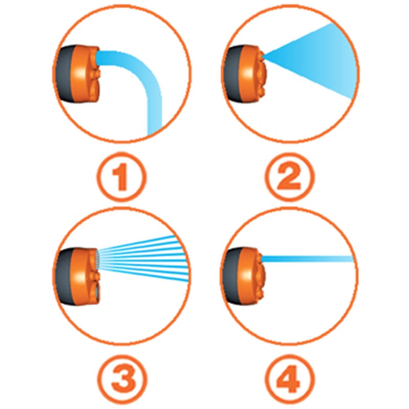 Includes: 10 metres of Ø9-13 mm hose, 1 x 3/4 inch connector with 1/2 inch reducer, 2 x automatic couplings, 1 x multifunction pistol with aerator.