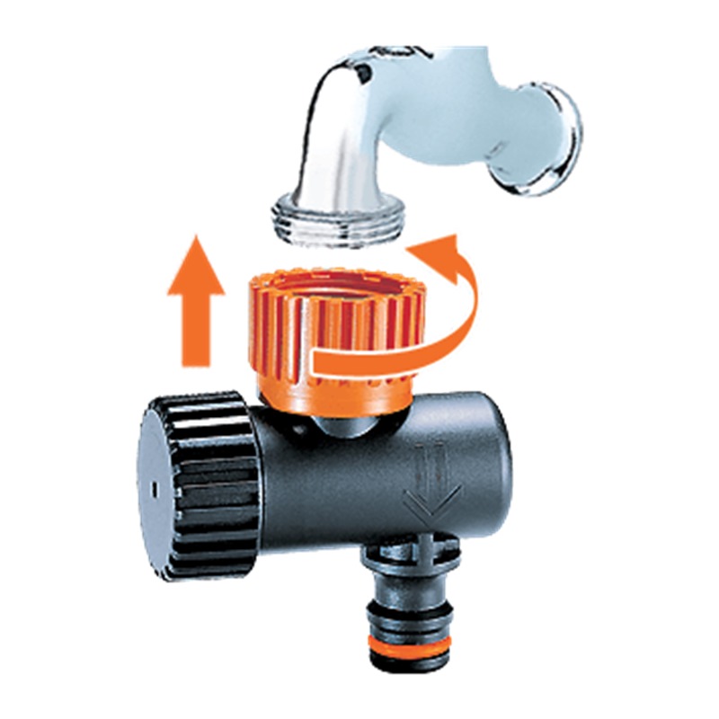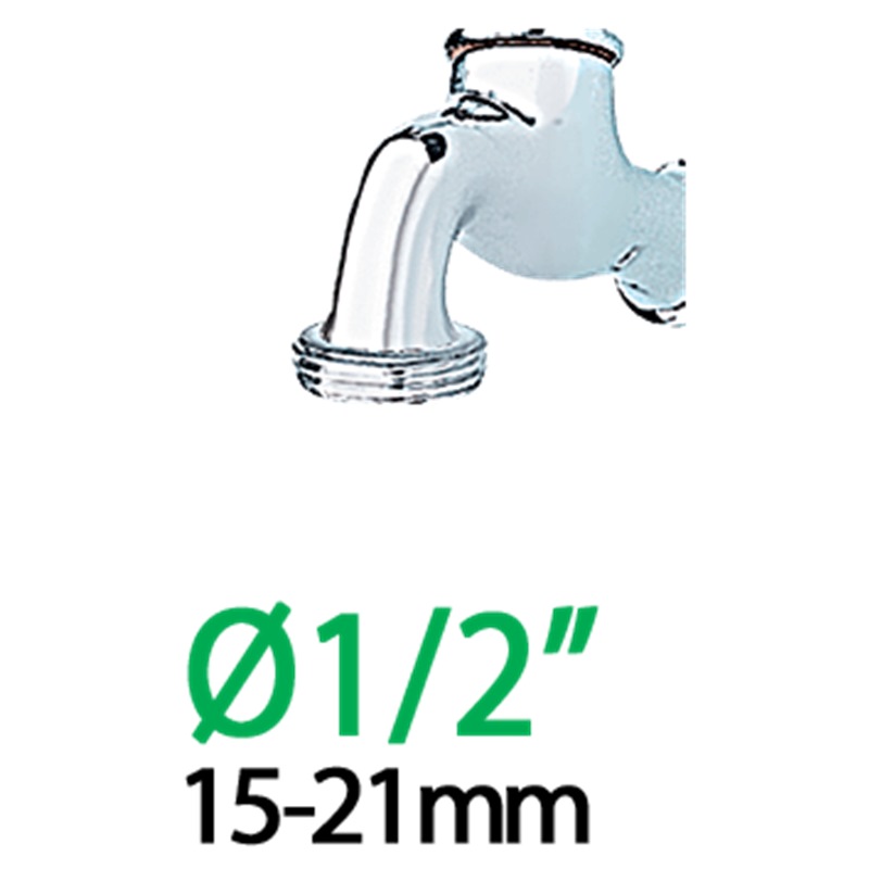 Connects to 3/4 inch (20 - 27 mm) or 1/2 inch (15 - 21 mm) threaded taps.