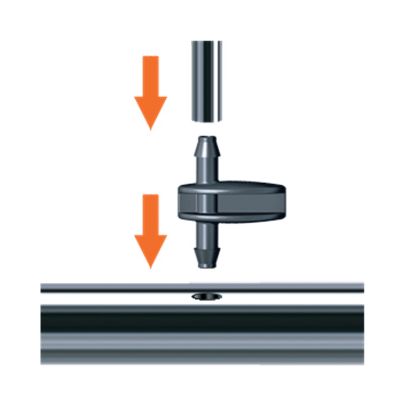 Used to branch off 1/4 inch (4 - 6 mm) feeding tube sections from 1/2 inch (13 - 16 mm) main tube or to join two feeding tube sections.
