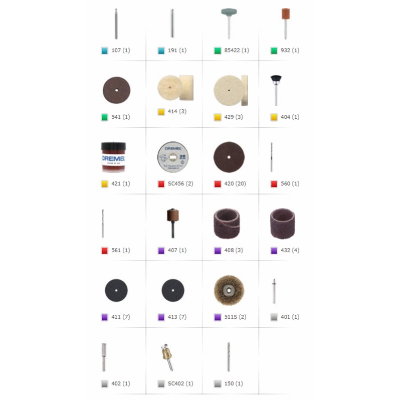 Besides the top of the line Dremel 8200 10.8V Li-ion powered tool you get a second Battery Pack, 5 useful attachments and 65 genuine Dremel accessories all packed in a high quality aluminum tool case.