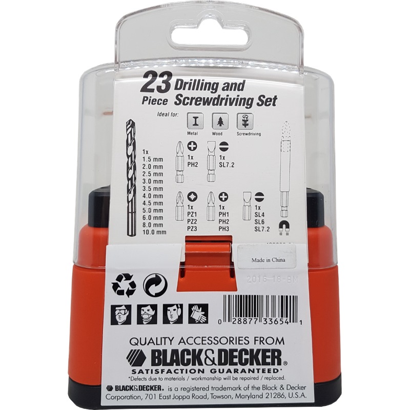 Home » Power Tools - Accessories » Drilling & Fastening Accessories » BLACK AND DECKER 23 PCS DRILL & SCREWDRIVER BIT SET 15095B1