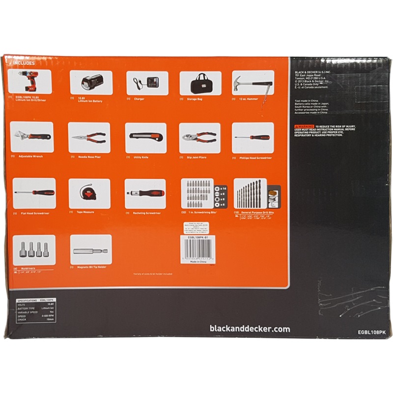 BLACK AND DECKER 10.8V LI-ON DRILL DRIVER PROJECT KIT EGBL108PK