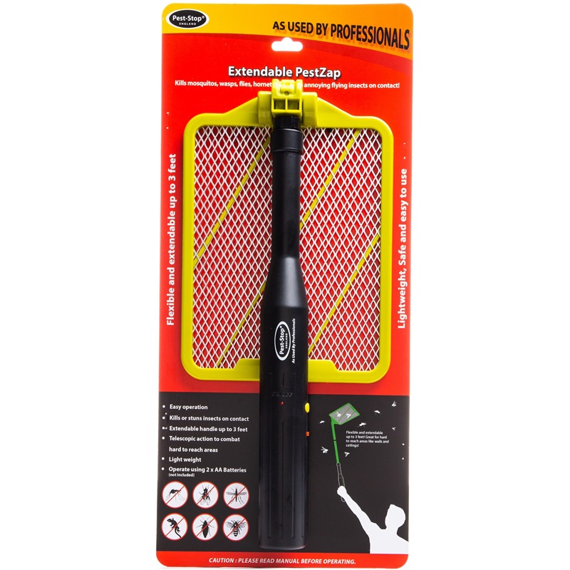 Trying to get those bugs trapped high on your walls or ceilings? Put down your old fly swatter and pick up a PestZap. Fully extendable and bendable, the PestZap kills hard-to-reach mosquitos, wasps, flies, hornets, yellow jackets and other annoying flying insects on contact.