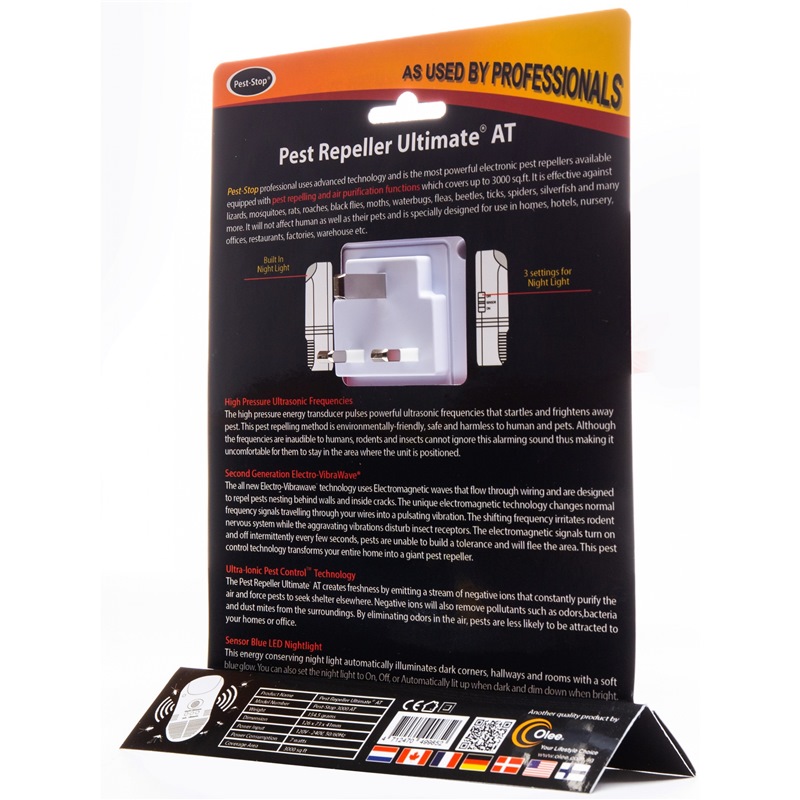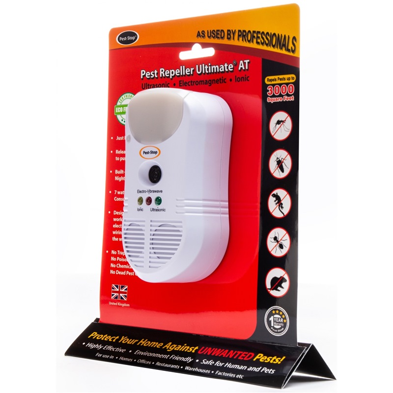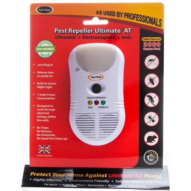 The Pest Repeller Ultimate AT by Pest-Stop Professional is the only electronic indoor pest repeller to combine Ultrasonic, Electromagnetic and Ionic technologies for unsurpassed pest control. Transform your home or office into a fortress against pests without exposing your family to dangerous insecticides.