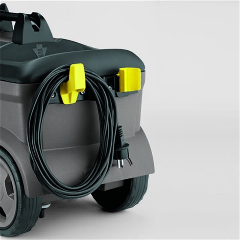 Puzzi 10/2 Adv: Spray extraction machine with defoamer dosage, cleaning agent compartment, integrated cable hook, holder for handle with trigger/suction pipe and a power outlet for PW 30/1 for improved area performance.