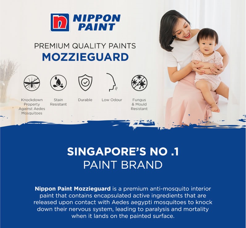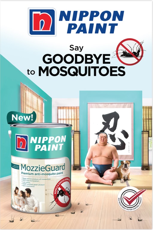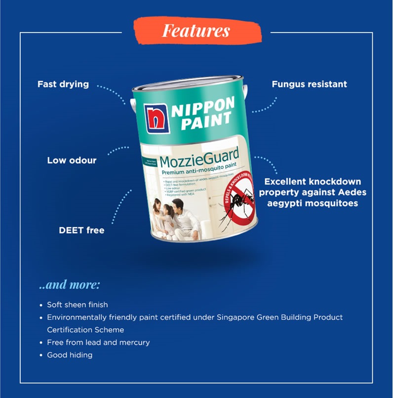 Nippon Paint MozzieGuard is a special coating with insecticide encapsulated in the polymer for interior use.