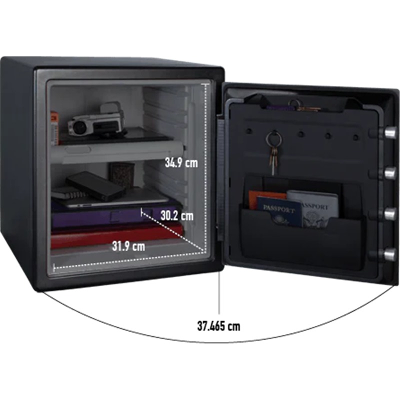 The SentrySafe Digital Safe is designed to protect documents, digital media and other valuables from fire, water and theft, 60% bigger bolts than traditional safes and a pry-resistant hinge bar provide additional security against unauthorised access.