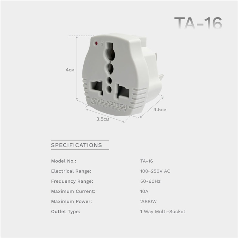 SOUNDTECH UNIVERSAL AUS (3PIN) TRAVEL PLUG TA-16
