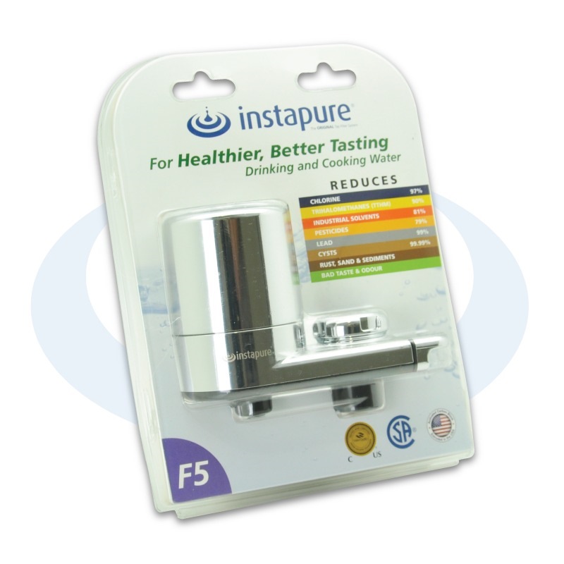 The Original Instapure® COMPLETE (F5) Faucet (Tap) Filter System provides up to three months or 750 litres of healthy, great-tasting water straight from your faucet*.