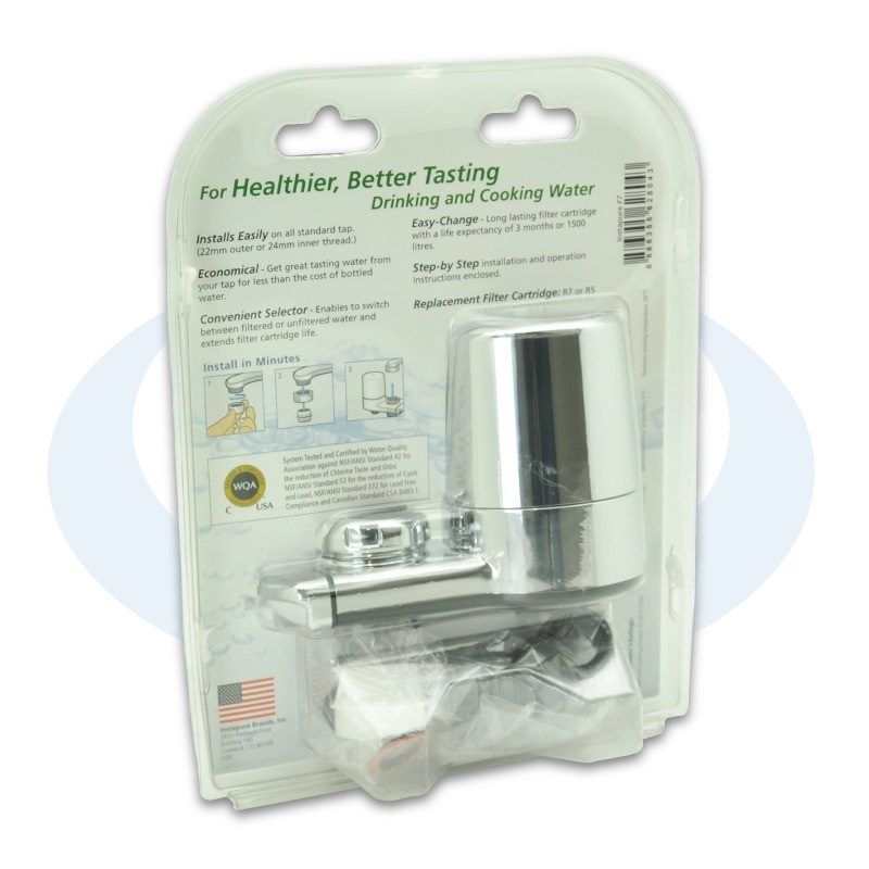 The Original Instapure® COMPLETE-PLUS (F7) Faucet (Tap) Filter System provides up to three months or 750 litres of healthy, great-tasting water straight from your faucet*.