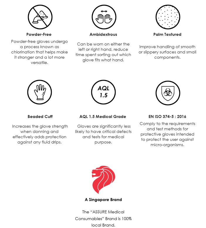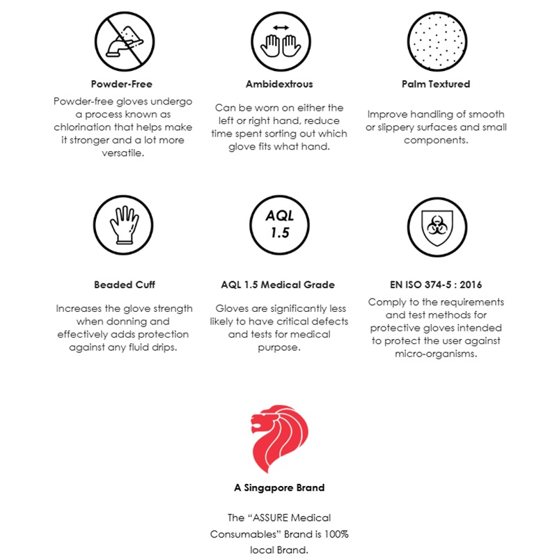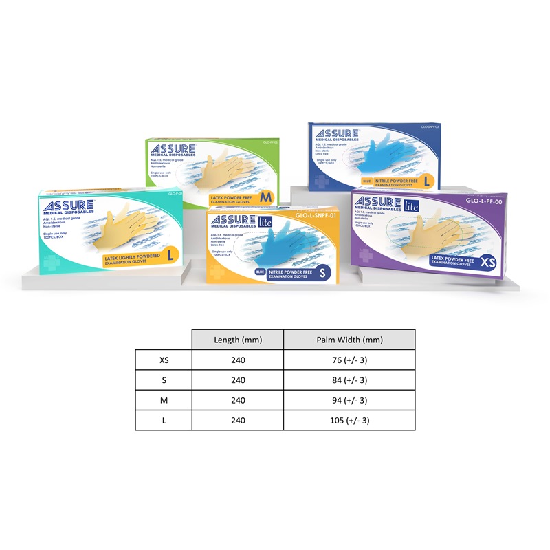 ASSURE Powder Free Nitrile Gloves are manufactured in the highest required quality of AQL 1.5 Acceptable Quality Level (AQL), ambidextrous and perfect for examination purposes.