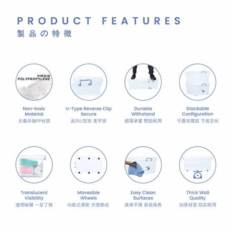 TOYOGO STORAGE BOX WITH WHEEL 9806 (47L) L70.2 X W48 X H20CM
