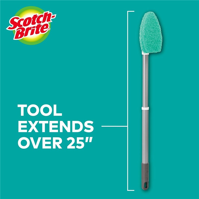 The Scotch-Brite™ Bath and Shower Scrubber is specially designed with the bathroom in mind. It has a heavy duty 60cm handle that allows you to clean from the ceiling to the floor cleaning. It's the perfect way to make your bath and shower sparkle from top to bottom! Refills available.