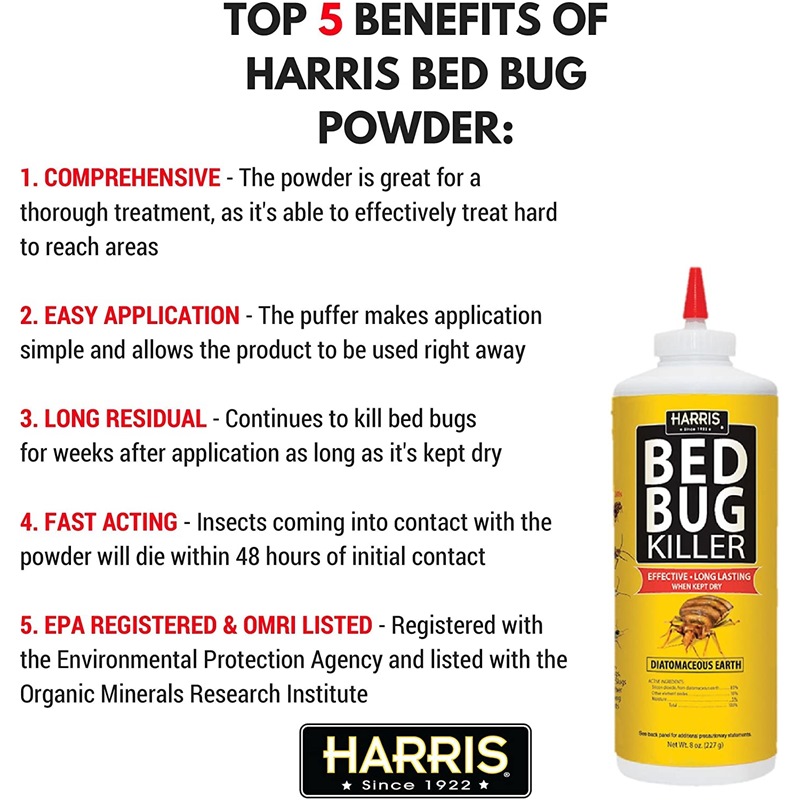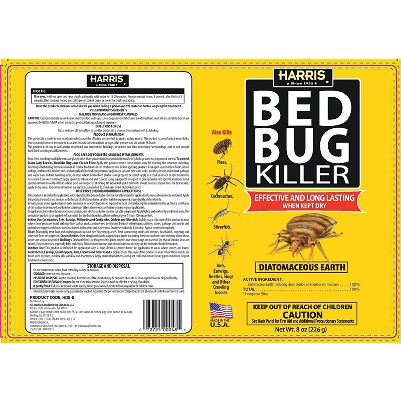The Harris 8 oz. Diatomaceous Earth Bedbug Killer is an effective way to kill crawling pests such as bedbugs, cockroaches and fleas.