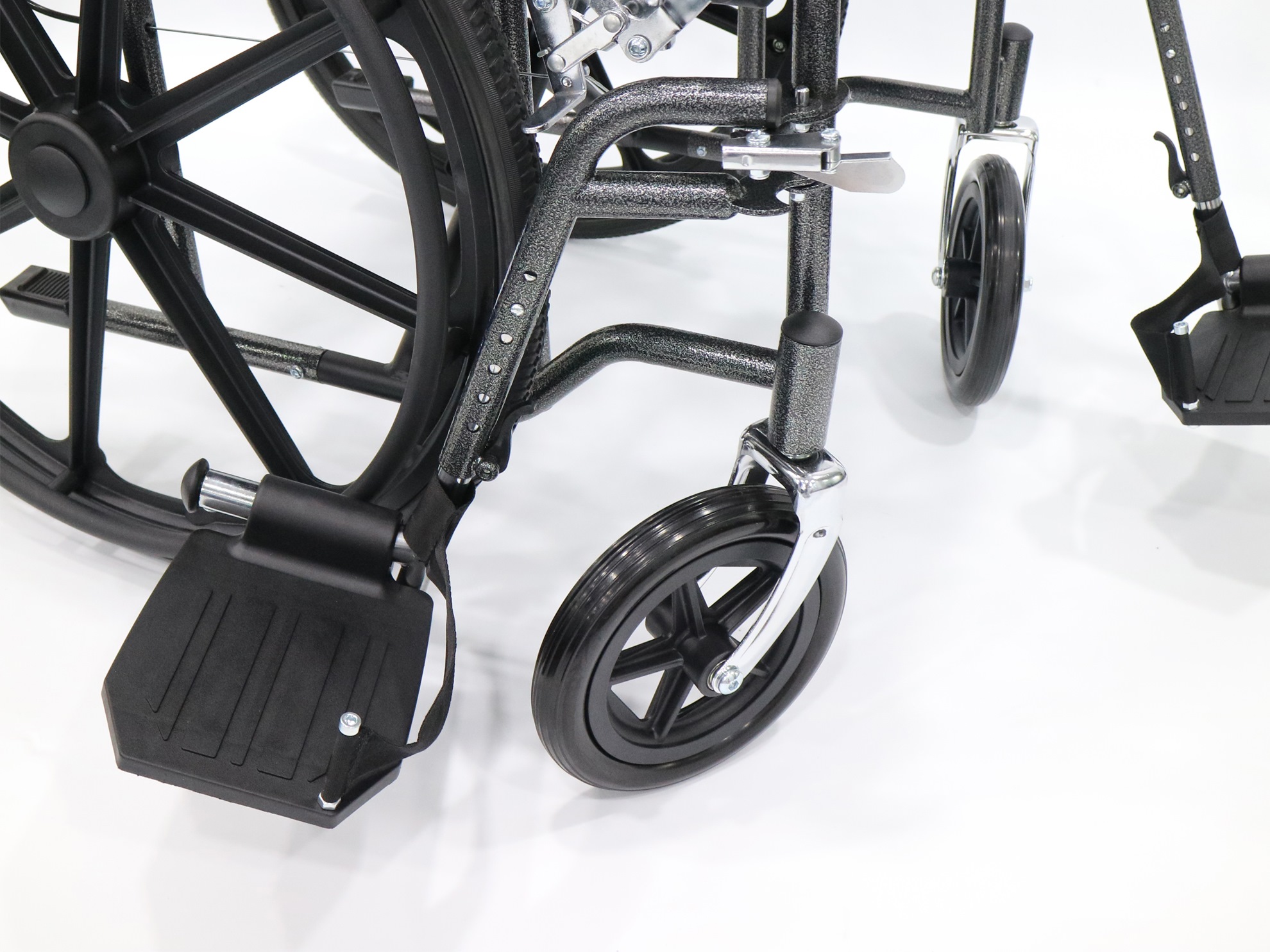 Designed for heavy duty usage, this wheelchair comes with environmental friendly hammertone finish.
