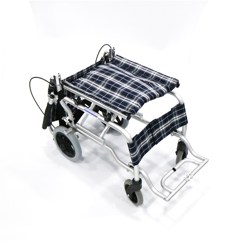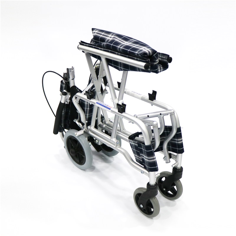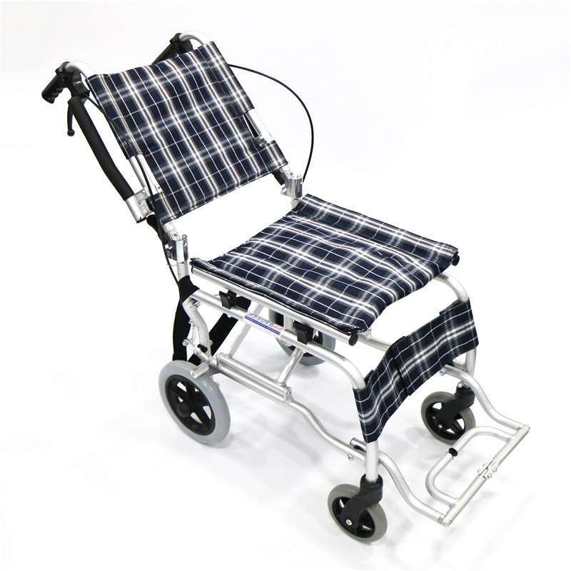 This transit chair has a light aluminum frame, flip-up armrests and a drop back handles and is great for those always on the move.