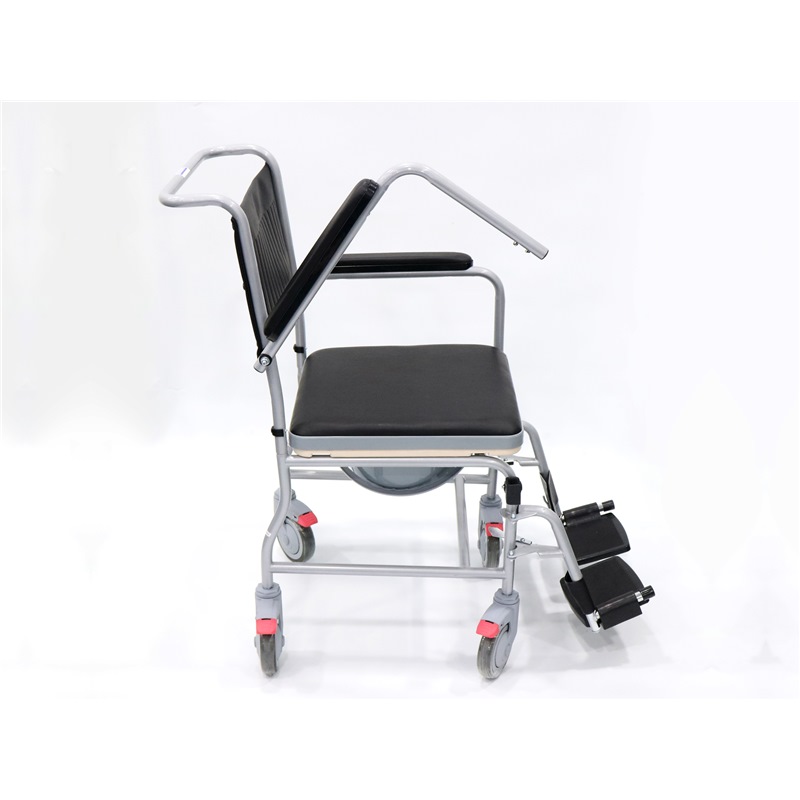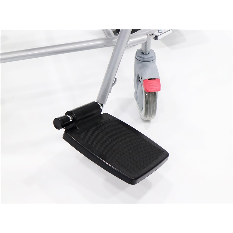 The flip down armrest and detachable footrest makes patient transfers easy.