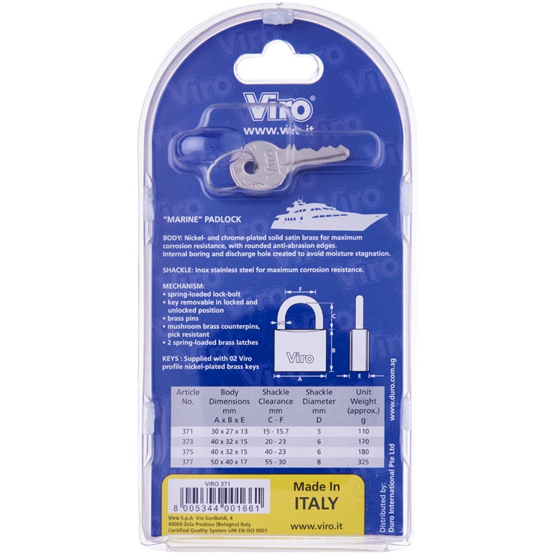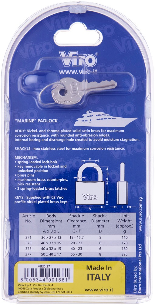 Home » Locks & Security » Padlocks & Lockout Tagout » VIRO MARINE PADLOCK SHORT SHACKLE - 371 / 373