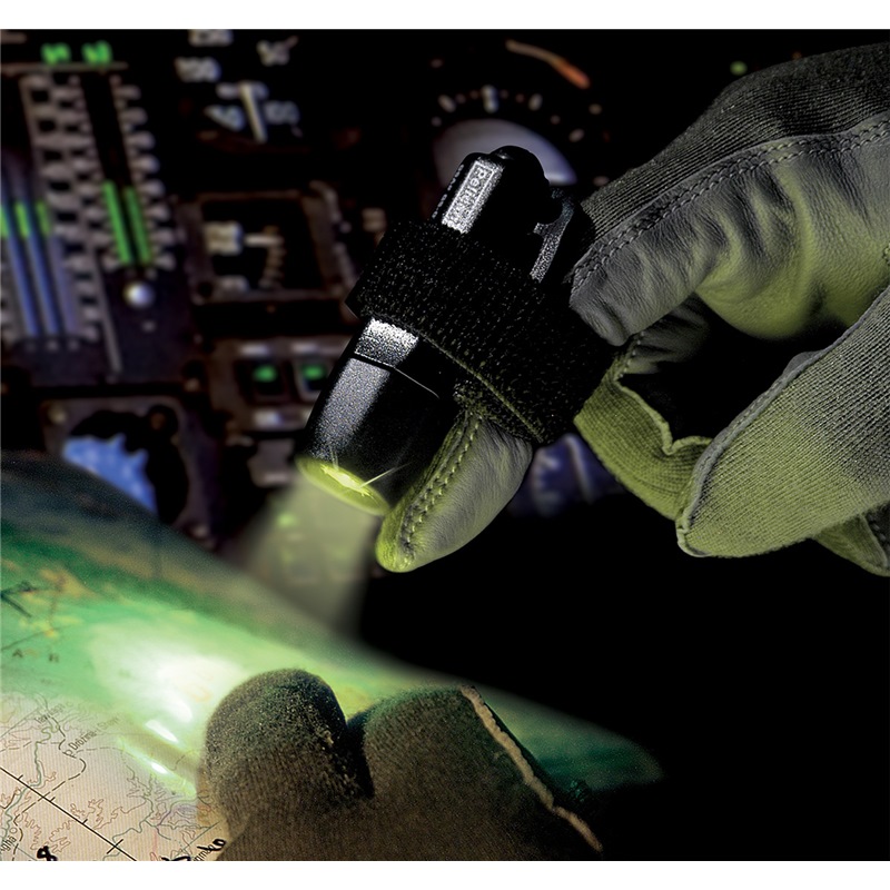 Packaged with 4 LR 44 1.5V alkaline coin cells, a break-a-way safety lanyard, and colored lens discs to preserve night vision.