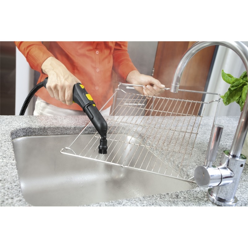 Versatile accessories leave tiles, hobs and exhaust hoods as well as tiny crevices dazzlingly clean.