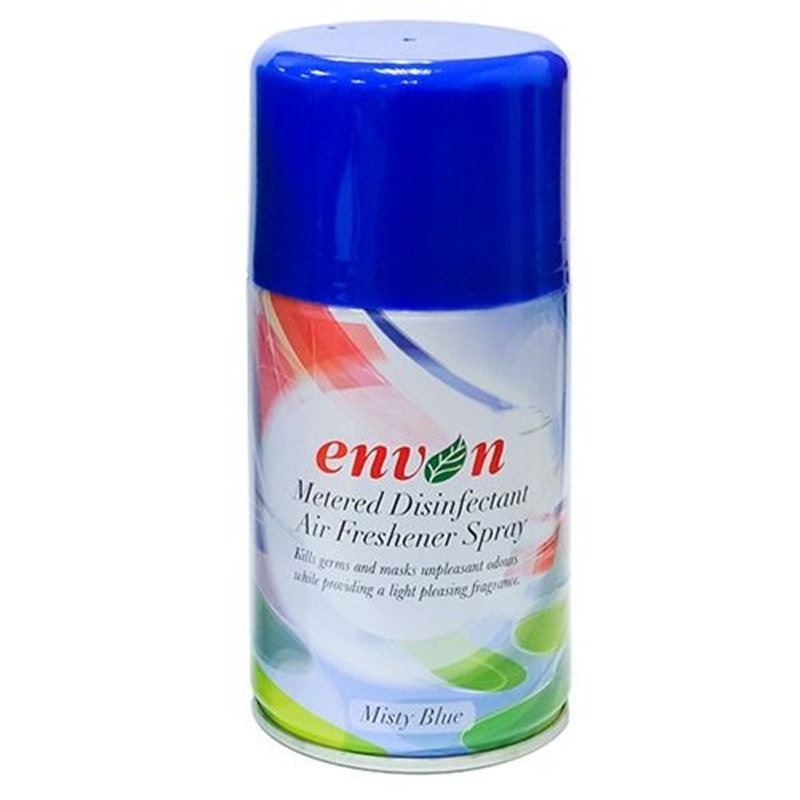 Use Envon Metered Air Freshener - Misty Blue with confidence in toilets, locker rooms, receptions, lounges, bars and other enclosed public areas to provide a fresh and pleasant environment. Compatible with most standard aerosol air freshener dispensers. Remove cap, place in dispenser, and turn unit on.