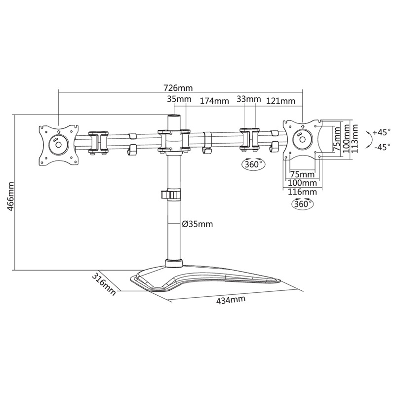 Max. Arm extend 428mm