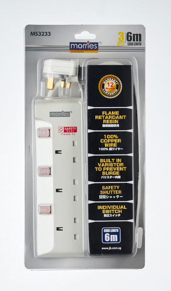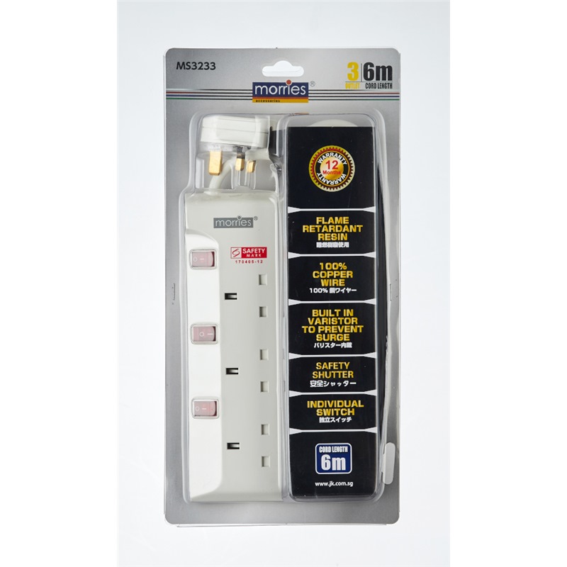 MORRIES 6M EXTENSION CORD 3W W/BUILT IN VARISTOR - MS3233/6M