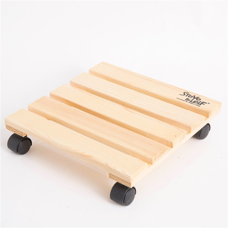 SL PINE WOOD SQUARE PLANT TROLLEY (270 X 270 X 65MM)