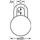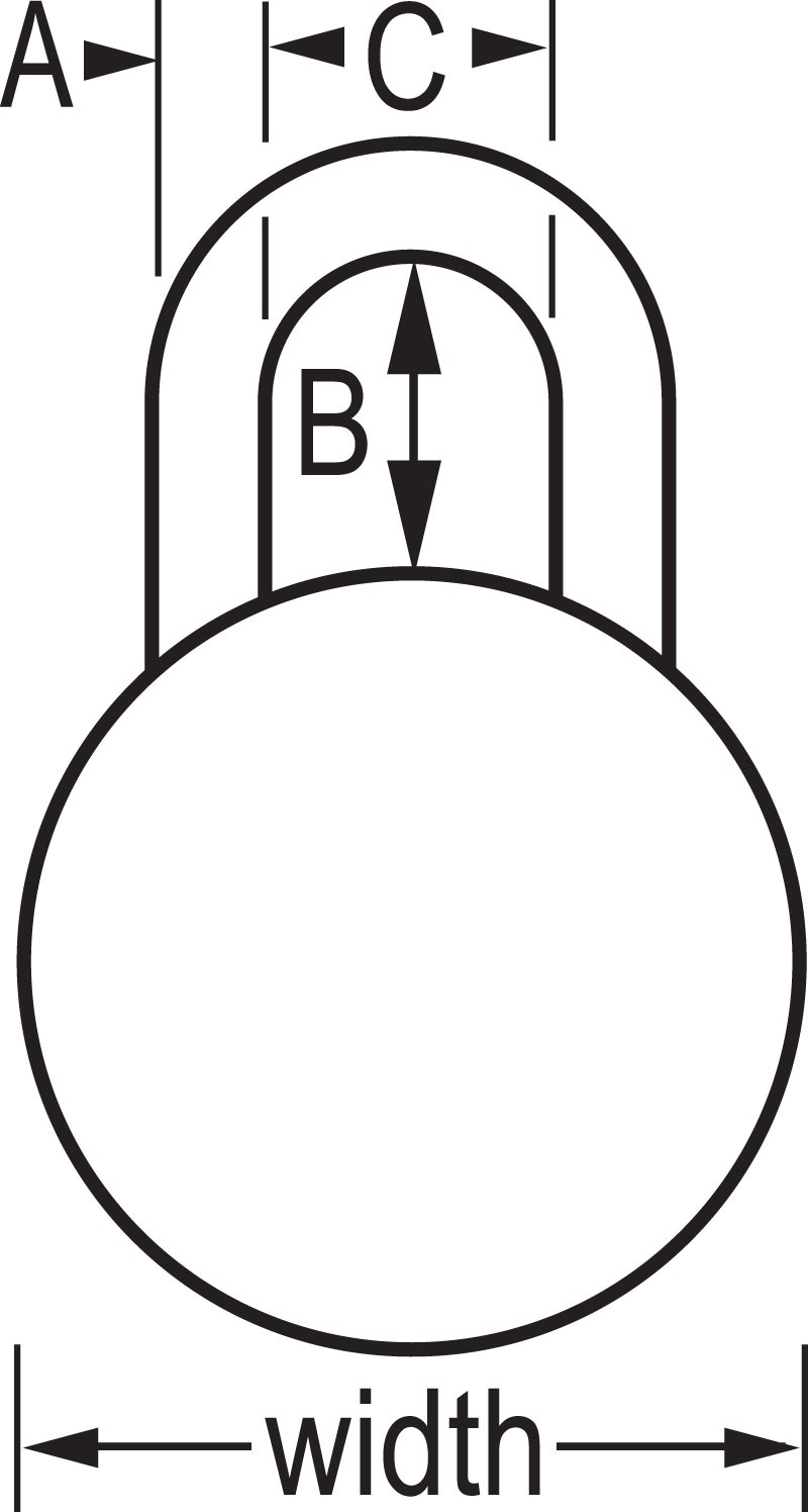 Shackle Dimension A: 9/32in (7mm) B: 1-1/2in (38mm) C: 13/16in (21mm)
